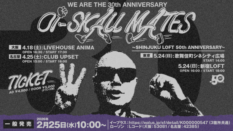 2026.02.24.TueOi-SKALL MATESの30周年ツアーの一般発売が2/25(水) 10時よりスタート!全箇所ワンマンライブでの開催で、たっぷりお届けします! お見逃しなく!