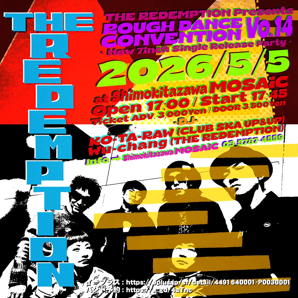 【5/5(祝)開催】THE REDEMPTION presents ROUGH DANCE CONVENTION Vol.14 ~New 7inch Single Release Party ~@下北沢MOSAiC
