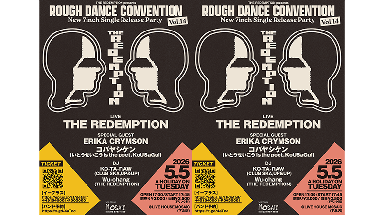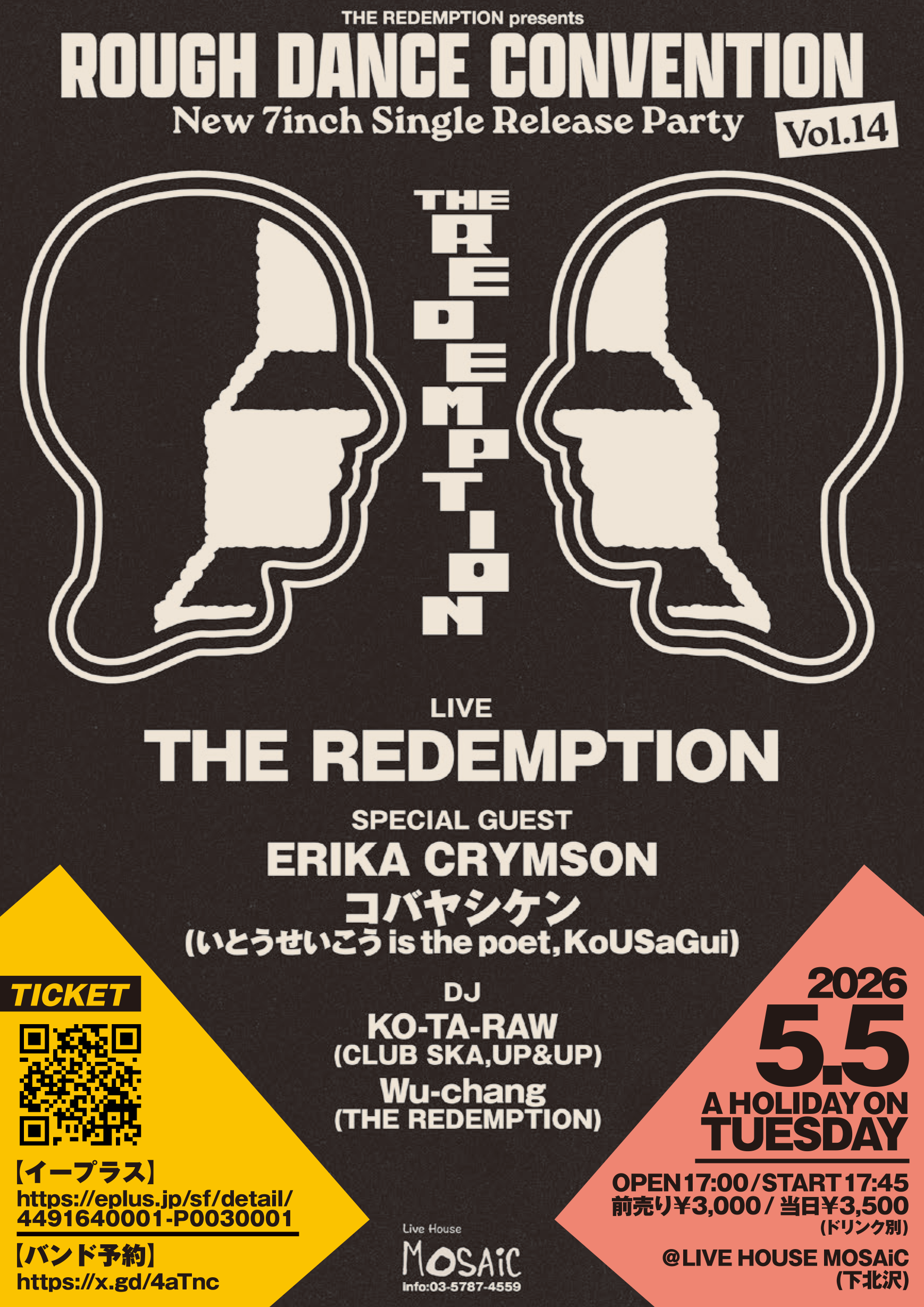 【スペシャルゲスト決定!】THE REDEMPTION presents ROUGH DANCE CONVENTION Vol.14 ~New 7inch Single Release Party ~@下北沢MOSAiC